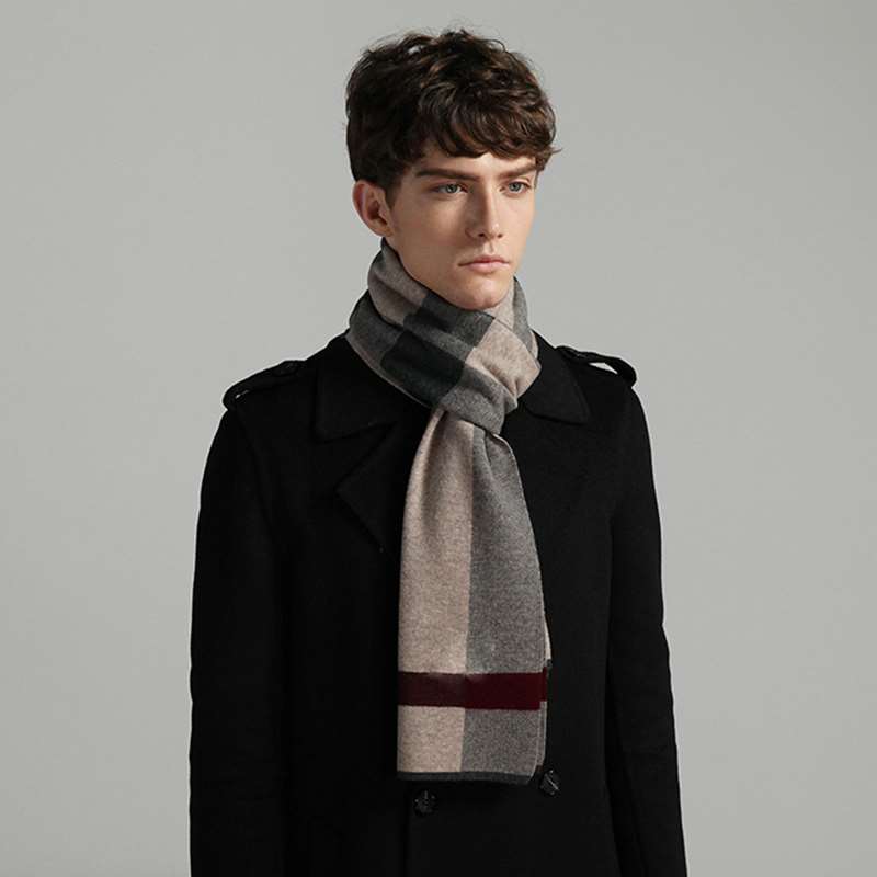 100% Lambswool Scarf Tartan Scarf for Men Khaki