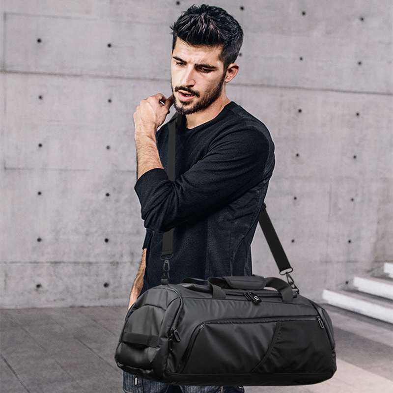 This gym bag is the perfect bag for pre and post workout. The large main compartment can store clothes, with computer compartment to store laptop or pad, side pockets to keep shoes and wet pocket to seperate sweaty tops and wet towel. There are 3 ways to carry: handheld,on a single shoulder and backpack.